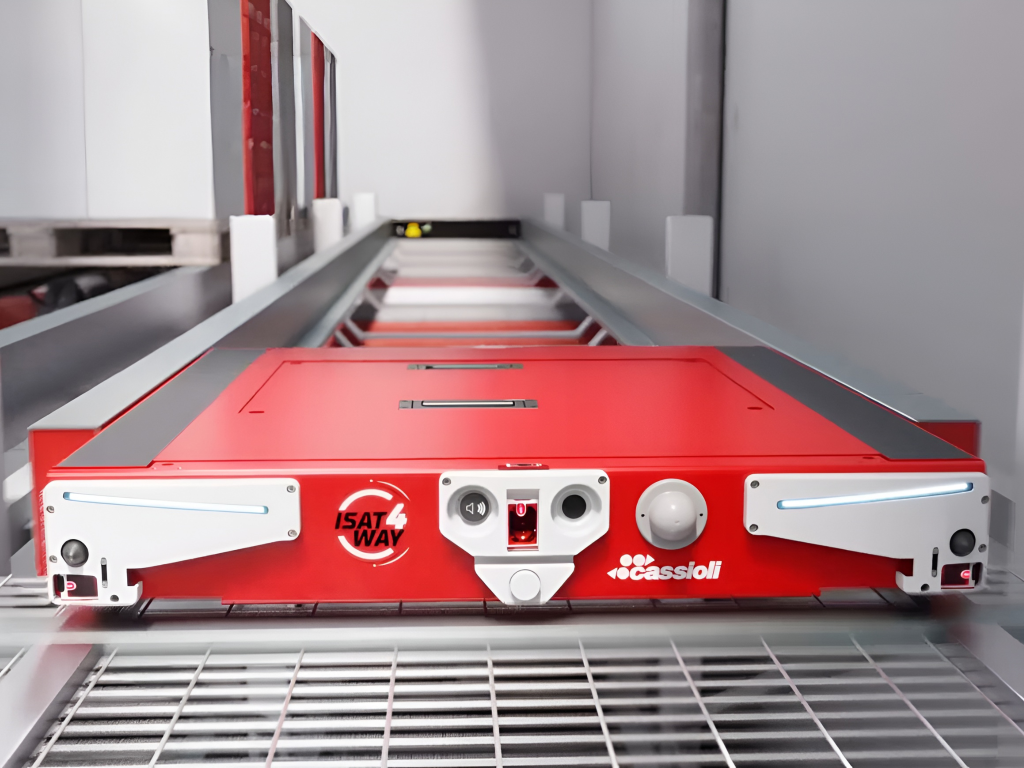 Четырехходовой шаттл (Pallet Shuttle 4 Way) от Cassioli представляет собой новый рубеж в автоматизации складов AS/RS высокой плотности. Система, разработанная для многоглубинного хранения и гибкого управления широким ассортиментом SKU, обеспечивает максимальную эффективность при размещении и выемке грузов.