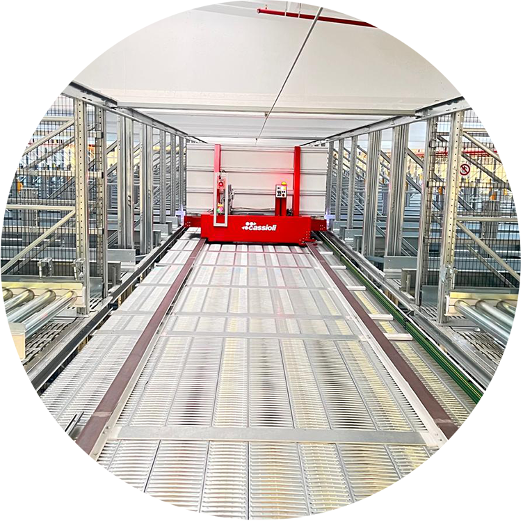 Системы типа «мать-дитя» от Cassioli предназначены для хранения полуфабрикатов (WIP) на предприятиях с ограничениями по высоте. Эта инновационная система позволяет соединять уровень пола с несколькими уровнями хранения, оптимизируя использование вертикального пространства без сложных структурных изменений.