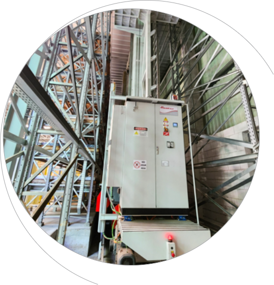 Компания Cassioli представила персонализированное решение для автоматизированного склада, на котором обработка погрузочных мест осуществляется с помощью рельсовых средств перемещения и подъема, со структурой с двумя колоннами с оптимизированным расположением. Большие размеры поддонов и ограниченная площадь в наличие побудили Cassioli разработать проект для средства подъема и перемещения высотой 8 метров и длиной 130 м. Проект начался с анализа статистических данных о потоках для расчета установки и об объеме для разработки идеального погрузочного места, с тем чтобы эффективно разместить продукцию. Для исследования использовались поддоны, имеющие размеры 2,9 х 1,94 х 0,45 м и максимальный вес 2 500 кг. В рамках проекта требовалось соединение с зоной получения продукции и производственной зоной, разноуровневое расположение которых было компенсировано посредством установки средства подъема и перемещения.