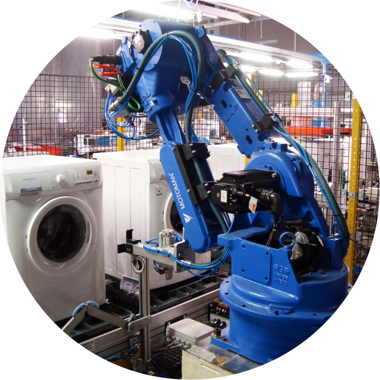 Роботизированные станции для сборочных линий представляют собой автоматические станции сборки, системы укладки на палеты в конце линии, производственные этапы с высоким уровнем автоматизации и другие применения, где используется робот на сборочной линии. Декартовые одноканальные/многоканальные роботы и антропоморфные роботы обеспечивают высокие результаты в плане цикличности, нагрузки и управления различными кодами.